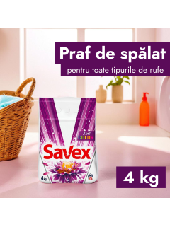 Стиральный порошок для цветного белья от производителя Savex 4кг – незаменимый помощник в поддержании чистоты и свежести вашей одежды. Оптический отбеливатель, входящий в состав продукта, обеспечивает максимальный эффект белизны и чистоты, устраняя желтые оттенки и серые тона у вещей после носки.