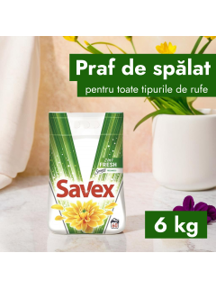 Стиральный порошок автомат SAVEX Fresh 6 кг благодаря эффективной формуле обеспечивает блестящий результат стирки, роскошь дорогих ароматов, ухаживает за тканью и защищает цвет.