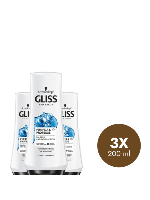 Бальзам - кондиционер для волос Gliss Kur " Purifying & Protects" восстанавливающий уход для защиты и придания блеска даже самым строптивым волосам! Предназначен для волос, которым необходимо питание. Этот восстанавливающий структуру крем-бальзам смягчает их, придавая мягкость и шелковистость! Экстракт семян моринги (называемой чудодейственным растением) действует как питательное и восстанавливающее структуру средство. Ваши волосы ежедневно подвергаются стрессу из-за окружающей среды. Загрязнение воздуха и свободные радикалы повреждают волосы, делая их тусклыми, сухими и вьющимися. Требуется интенсивный ремонт и длительная защита. Gliss Очищение и Защита очищает и защищает: улучшение расчесывания, восстанавливает повреждения, вызванные свободными радикалами. Защищает от загрязнений, защита от мелкой пыли в воздухе. На 97% ингредиенты натурального происхождения. Сверхлегкая линия Глисс Кур Purify & Protect с антиоксидантным комплексом и экстрактом семян моринги питает волосы и создает легкий щит от внешнего воздействия.