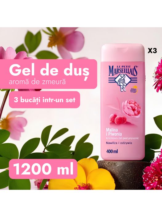 Гель для душа Le Petit Marseillais «Малина и пион», 1200мл, 3х400 мл