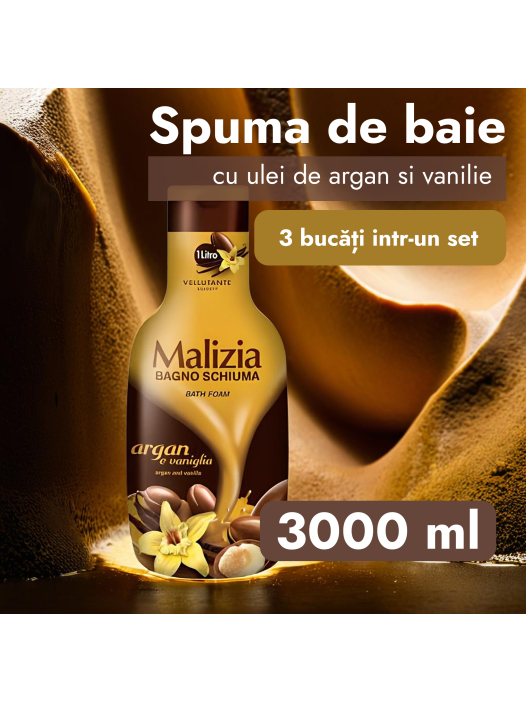 Пена для душа и ванны Мализия Арган и Ваниль – это идеальное сочетание органических компонентов, созданное для бережного ухода за Вашей кожей. Cоздайте атмосферу спа процедур дома, в ванной комнате. Миллионы пенных пузырьков нежно ухаживают за здоровьем и красотой женской, мужской кожи. Успокаивающее, густое средство от стресса и усталости дарит антистресс эффект и создает атмосферу ароматерапии. Расслабляет и снимает усталость после насыщенного дня. Создают согревающую атмосферу и увлажняющий эффект телу. Благодаря натуральным экстрактам в составе, она благоприятно воздействует на кожу, дарит легкий аромат и прекрасное настроение. Пена питает кожу, наполняя витаминами и питательными веществами. Защищает кожу от воздействия свободных радикалов и старения. Приятный теплый аромат аргана и ванили придает эмоциональное наслаждение во время купания. Способ применения: Наберите теплую ванну, добавьте небольшое количество пены под струю воды и вы услышите аромат аргана и ванили, который окружит вас ароматной гармонией. Вы сможете составить отличный подарочный косметический бьюти бокс набор косметики в подарок для взрослых и подростков. А также для детей, девочек и мальчиков. Имеет большой объем в количестве 3000 мл, которого хватит надолго. Желаем вам хорошего настроения и приятных покупок! Malizia - это марка с историей успеха, продукт произведенный в Италии, красивый яркий флакон – это оригинальный способ сказать любимым о своих чувствах, отличный подарок на праздник или без повода, который всегда порадует ваших близких. Почувствуй энергию внутри себя с Malizia!