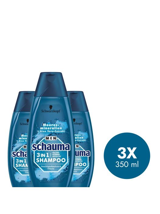 Для мужчины важно ухаживать за волосами, ведь чем дольше они остаются гладкими, здоровыми и сильными — тем больше уверенности в себе. Шампунь «Морские минералы и алоэ вера» от бренда Schauma создан с заботой не только о волосах, но и об окружающей среде. Формула средства основана на натуральных компонентах, а упаковка продукта на 96% состоит из переработанного пластика. Уходовая косметика для волос шампунь относится к eco-friendly — он не тестировался на животных. К тому же для того, чтобы смыть средство с волос, требуется значительно меньше воды, что еще раз подтверждает: сохранение планеты для бренда Schauma — важная миссия. Мужской шампунь для волос Schauma Men "Морская Свежесть 3 в 1" - идеальное решение для мужчин, которые ценят свежесть и энергию морского бриза в ежедневном уходе за волосами, телом и кожей головы. Уникальная тройная формула обеспечивает эффективное очищение волос, кожи головы и тела, оставляя ощущение прохлады и свежести. Шампунь для мужчин подарит волосам приятный аромат и ощущение легкости. Наслаждайтесь морской свежестью и удобством в уходе с этим универсальным средством Шаума Men. Формула 3-в-1 для волос, тела и лица с ингредиентами природного происхождения. Алоэ вера известно своими увлажняющими свойствами. Минералы укрепляют волосы и предотвращают повреждения. Ухаживающая формула обогащена витаминами и комплексом микроэлементов. Экологичная формула легко смывается с волос.